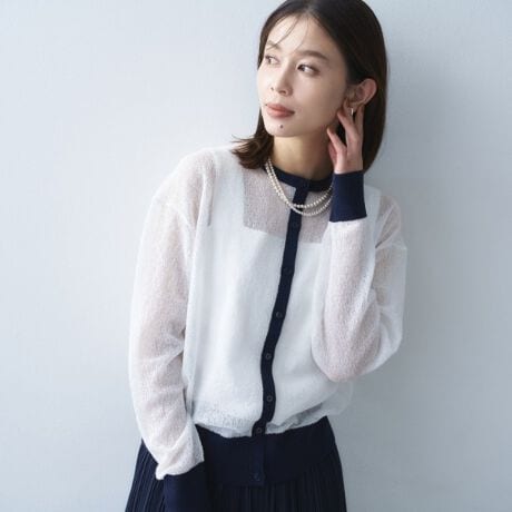 シアー感を活かしてワンピースやインナーと合わせた軽やかなレイヤードにも最適。