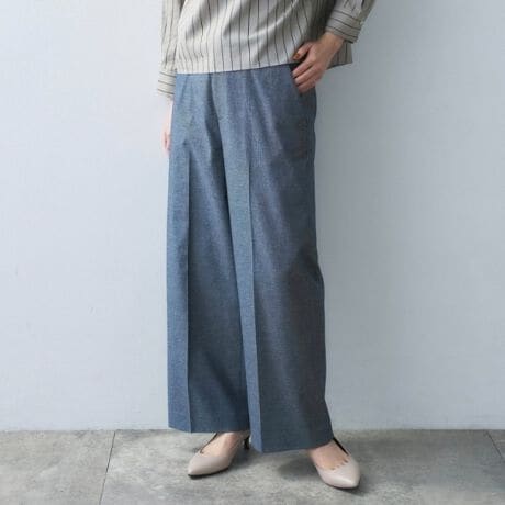上品な生地感が、カジュアルからフォーマルまで幅広いシーンにマッチするアイテムです。