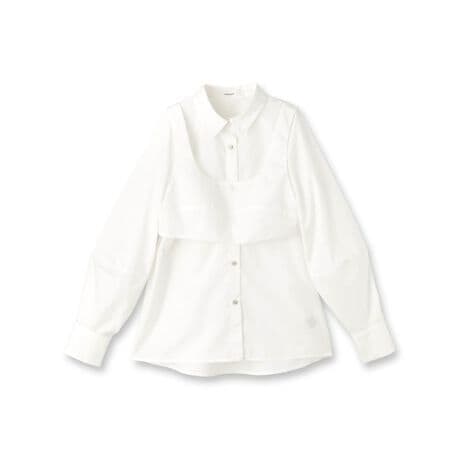 ビスチェをレイヤードしたデザインが、一枚で旬のスタイルを叶えるシャツブラウス。