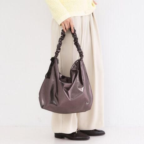 トレンドのギャザー持ち手のワンショルダーバッグ。