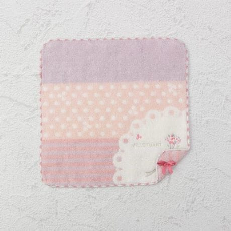 リトルブーケ:水玉柄とストライプに小花をあしらい、かわいらしくまとめたタオルハンカチです。