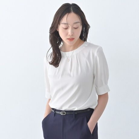 襟元のタックディテールがポイントのスーツインナーブラウス。