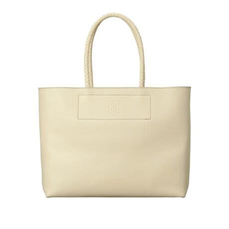 シンプルなボディに映える編みこまれたハンドルがデザインのアクセントになっています。