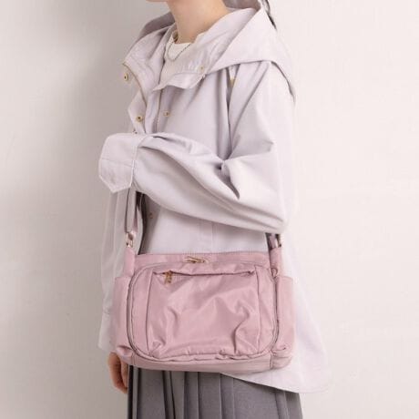 金具はゴールドで上品に仕上げ、ショルダーは長さ調節ができて肩掛け・斜め掛けどちらも快適。