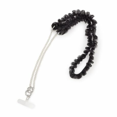 ふんわりとしたチュール素材とフェイクパールを組み合わせたロングストラップ。