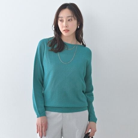 ざっくりした編地で女性らしいボートネックが首元をすっきり見せてくれます。