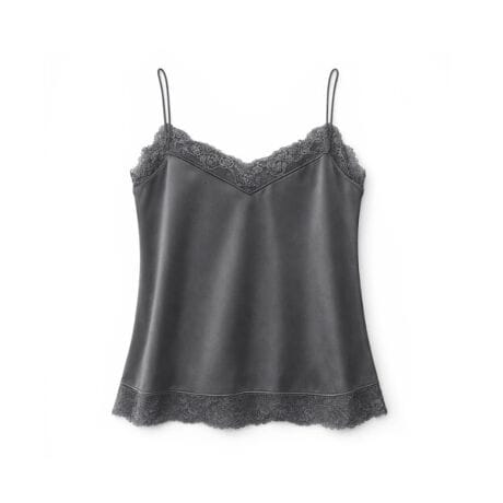 ・サテンの柔らかな光沢感と繊細なレース使いが女性らしさを引き立てるキャミソール。
