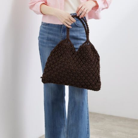 マクラメの編み模様が目を惹く、トレンド感のある夏バッグです。