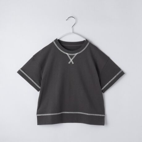 配色ステッチがポイントの、スウェット見えの天竺Tシャツ。