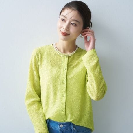 繊細なストレッチレースのカーディガンはシンプルながらもレースの素材感が上品でフェミニンなアクセントを与えています。