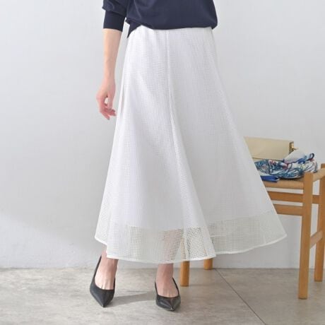 シンプルなトップスを合わせることで、スタイリングが引き締まり、フォーマルなシーンにも映えるアイテムです。
