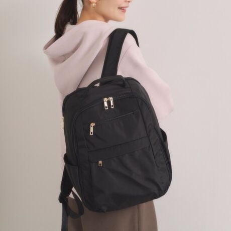 シンプルで使いやすいスクエアフォルムに、品のあるゴールド金具を合わせた大人なリュックです。