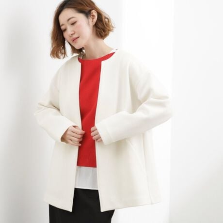 軽やかな着心地で、きれいめに決まるノーカラージャケット。