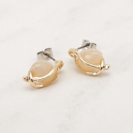 きれいなカラーリングのアクリルパーツをメタルで包み込んだようなデザインのピアス。