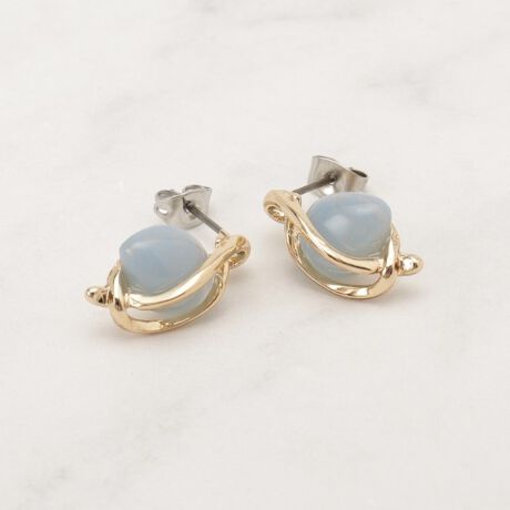 きれいなカラーリングのアクリルパーツをメタルで包み込んだようなデザインのピアス。