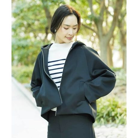 軽さが魅力のダンボール素材を使用した、春のお出かけに気軽に羽織れて頼りになるフードアウター。マットでドライタッチな表面感が、カジュアルなアイテムながらラフになりすぎない印象に仕上げています。コンパクトな丈感に、タックで広がりを持たせたバックスタイルがデザインポイント。腰まわりをさりげなくカバーできるのも嬉しいポイントです。