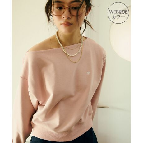 メンズライクな裏毛のスウェットを女性らしく着れるようなオフショルデザインのスウェットです。
