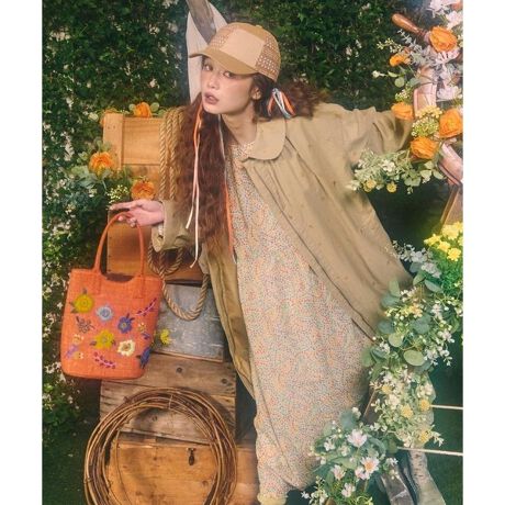 ベーシック見えながらもホコモモラらしさを詰め込んだコート。日常使いにもオススメで、春の入口にはコートインで調整したり、春本番にはワンピースやブラウスに重ねた着こなしもオススメです。同テーマのブラウス【GJBDE02250】やワンピース【GJEDE02360】との柄×柄の組み合わせはまとまりのあるコーディネートが楽しめます。