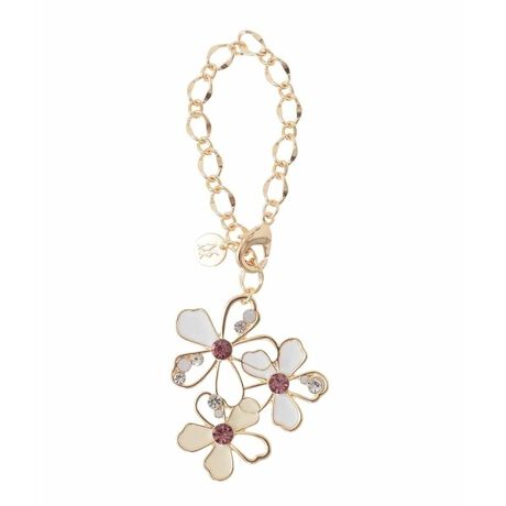 [型番:BKSGD01040]配色でアクセントを付けた透かしフラワーがキュートなメタルモチーフチャーム。キラリと光るビジューをプラスして揺れ動きに上品さを加えた大人っぽさが魅力です。バッグが変わってもすぐに付け替えられるチェーンフック仕様。パッと目を惹く上品なカラーバリエーションで、お揃いでのプレゼントにも最適なおすすめのアイテムです。