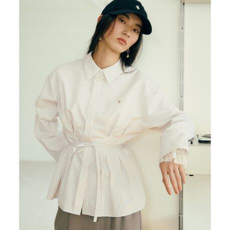 よりスタイルアップして見えるように身頃、ウエストをすっきりとさせ、着丈をカットしすっきりと見えるようにしました。ベルトループ付きでウエストマークして今年らしいスタイリングを楽しんで頂けるシャツになっています。
