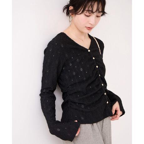去年も大人気だったカットレースロンT。今年バージョンにアップデート。今年はフロントと脇にギャザーを寄せて去年より着やすくすっきりに。ウエストが程よくシェイプされたシルエットになるのでスタイルアップ抜群!前後2WAYでも着れるのもうれしいポイント。