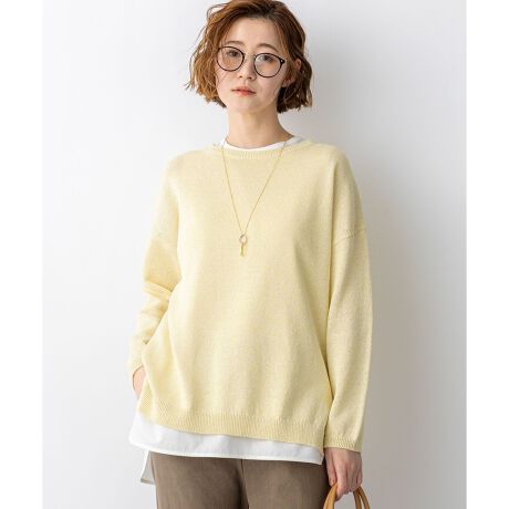 ミックスカラーの表情豊かな編地が特徴的な、天竺編みのボートネックプルオーバーです。程よくゆとりのあるオフボディのシルエットとチュニック丈で、気になる体のラインを拾わずに上品に体型カバーを叶えます。両脇に入れたスリットが抜け感を演出し、細身のパンツやデニムと合わせたカジュアルなスタイリングはもちろん、ワイドパンツと合わせたリラックス感のある着こなしもおすすめです。さらっと着るだけで様になり、デイリーからお出かけまで幅広いシーンで活躍します。カラーは、ナチュラルで合わせやすいベージュ(#533)、顔周りを明るく華やかに彩るイエロー(#540)、清涼感があり知的な印象のブルー(#572)の3色展開です。