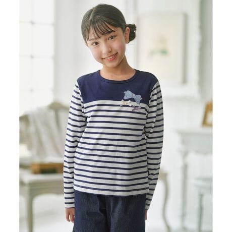 配色のヨークが顔まわりをスッキリと見せ、カジュアルで女の子らしい印象に仕上げてくれます。
