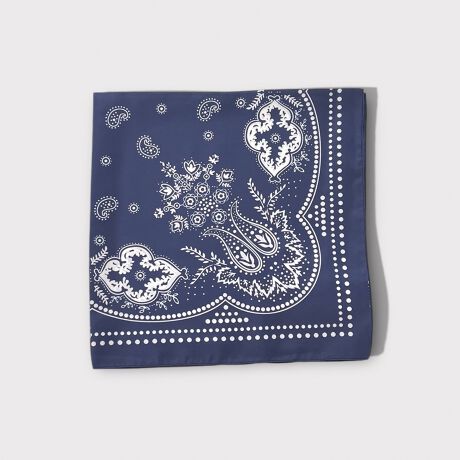 イタリア製ならではの発色と上質な風合いが魅力の、クラシックなバンダナ柄スカーフ。