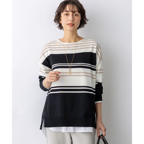 天竺で編みたてたボートネックのオーバーサイズプルオーバーです。コットンポリエステルの程よいハリ感があり、体のラインを拾わないストンとしたきれいなシルエットで着ていただけます。しっかりとおしりが隠れるチュニックレングスなので、タイトなボトムスとのスタイリングも安心です。脇線を少し前に振って裾にスリットを入れることで、軽やかな印象に仕上げました。襟元のくるんとさせた仕様もさりげないポイントです。型崩れしにくい素材感と、さくっと着られてさまになるデザインは、デイリー使いにぴったりなアイテムです。カラーは、コーディネートのアクセントになるピンク(#012)、やわらかな雰囲気のベージュ(#033)、ヘルシーな雰囲気のイエロー(#040)、軽やかな配色のブラック×ベージュ(#105)、淡いトーンで落ち着いた印象のベージュ×イエロー(#133)、明るいピンクが目を引くネイビー×ピンク(#175)の6色展開です。