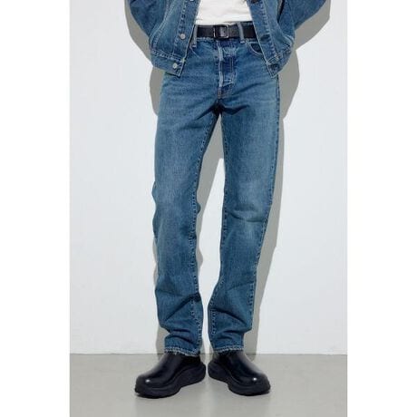 ■AZUL DENIM ベーシックストレート■ポイント定番のベーシックストレートデニムです。■ディテール程よい腰まわりと真っ直ぐ落ちるレッグラインでどんなトップスにも合わせやすく、インディゴとブラックで表情を使い分け可能。過度な加工を抑えたミニマルなデザインで長く愛用できる一本です。サイズは28/30/32/34インチの4サイズ展開で、幅広い体型に対応可能。標準的なポケット配置やベルトループ、しっかりした縫製により耐久性が高く、着用と洗濯で出る自然な経年変化も特徴です。■スタイリングカジュアルにはTシャツ+スニーカーで定番コーディネートに。シャツやニットを合わせればきれいめカジュアルに。BLUは洗いの効いたカジュアル寄り、BLKはモノトーンで引き締めたい時に便利です。ブーツやローファーで足元を変えれば印象が替わり、ロールアップで軽さを出すのもおすすめ。同素材のサードタイプデニムジャケットとのセットアップがおすすめです。■生地BLUは13ozインディゴ、BLKは12ozブラックデニムを使用。透け感:なし裏 地:なし伸縮性:なし光沢感:なし[注意事項]※画像の商品はサンプルです。実際の商品と仕様、加工が若干異なる場合があります。※画像の商品は光の照射や角度、お使いのモニター環境により、実物と色味が異なる場合がございます。※着用、お取り扱いの際は、アテンションタグをご確認ください。
