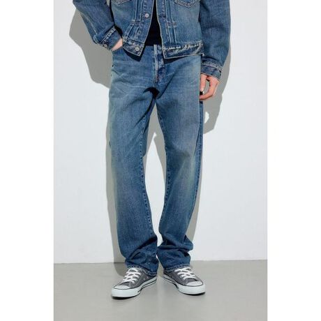 ■AZUL DENIM ルーズストレート■ポイントルーズシルエットのストレートデニムです。■ディテールワンウォッシュ加工で程よく整った色味と毛羽感を抑えたクリーンな表情。ゆったりめの腰?腿まわりとまっすぐ落ちる裾でリラックス感のあるシルエットが特徴。3サイズ展開で様々な着こなしができます。■スタイリング同素材のジャケット(251JSN10-0471 セカンドタイプデニムジャケット)とセットアップで着用可能です。トップスはビッグTシャツやスウェットでゆるくまとめるか、シャツや薄手ニットで上品に寄せるのも◎。足元はスニーカーでラフに、ブーツでワーク感を強めても合います。ロールアップして軽さを出すと春夏の着用もしやすいです。■生地BLU/One Washは13ozインディゴ、BLKは13ozのブラック×ホワイト糸のデニムを使用。透け感:なし裏 地:なし伸縮性:なし光沢感:なし[注意事項]※画像の商品はサンプルです。実際の商品と仕様、加工が若干異なる場合があります。※画像の商品は光の照射や角度、お使いのモニター環境により、実物と色味が異なる場合がございます。※着用、お取り扱いの際は、アテンションタグをご確認ください。