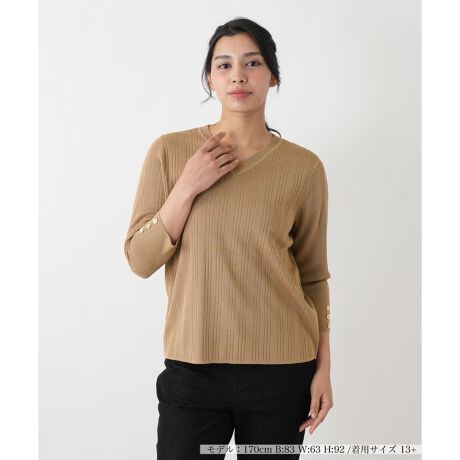 袖ボタンVネックリブプルオーバー【Leilian WHITE LABEL】