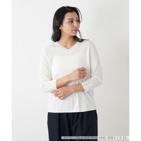 袖ボタンVネックリブプルオーバー【Leilian WHITE LABEL】