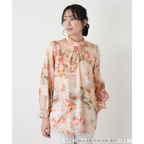 フラワー柄タックブラウス【ROCHAS Premiere】【ERICA】