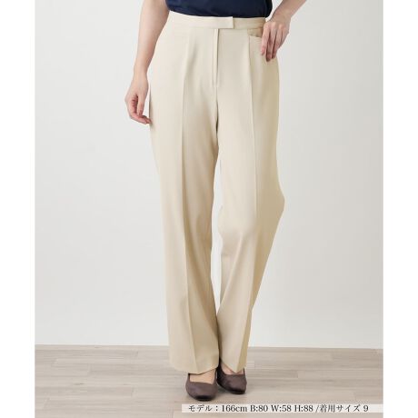 初夏のコーディネートをスマートに演出する、洗練されたシルエットのブーツカットパンツです。膝から裾にかけて緩やかに広がり、脚のラインを美しく引き立てます。しなやかなコンフォートストレッチ素材は、やや薄手の質感ながら水や汚れを弾くはっ水加工が施されており、天候を気にせず快適に着用可能。フロントホックとファスナーの仕様が腰周りを端正に整え、大人の佇まいを品良く格上げしてくれる一本です。