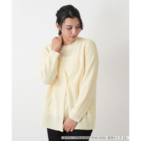 初夏の装いに一枚あると便利な、シンプルなVネックのノーカラーカーディガン。すっきりとしたVラインがデコルテを美しく見せ、洗練された印象を与えます。流行に左右されない無地の長袖デザインで、ワンピースに羽織ったり、肩に掛けたりと様々な着こなしを楽しめます。どんなスタイルにも品良く馴染む、着回し力に優れたベーシックアイテムです。