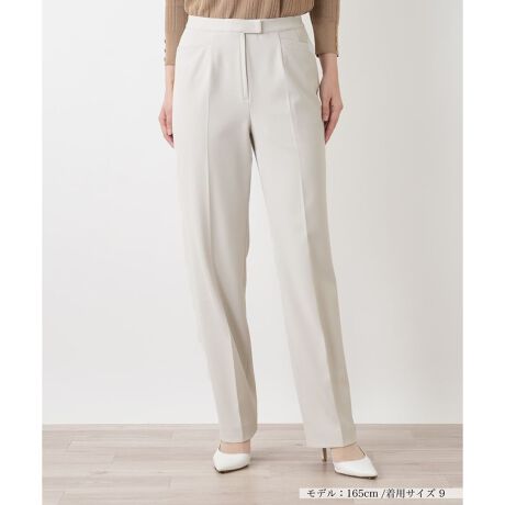 初夏のデイリーシーンをスマートに彩る、センタープレスパンツです。脚のラインを真っ直ぐに美しく整えるシルエットが、洗練された大人の佇まいを叶えます。優れた伸縮性を備えたコンフォートストレッチ素材は、身体の動きにしなやかに寄り添い、長時間の着用でもストレスのない穿き心地を実現。水や汚れを弾くはっ水加工が施されたやや薄手の生地なので天候を気にすることなく、軽やかなフィットで汎用性の高い一本です。ホック&ファスナーにより開閉が可能。