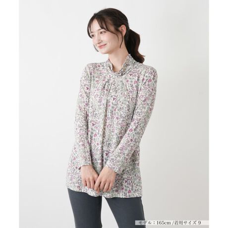 「BINDA」の小花柄ハイネックカットソーは、初夏のコーディネートを可憐に彩る一枚です。落ち着いた地色に繊細な花々を散りばめ、大人の女性にふさわしい上品な佇まいを演出。首元のサイドに施されたシャーリングゴムが、ハイネックに柔らかなニュアンスを与えつつ顔周りを端正に整えます。伸縮性のあるやや薄手の素材と軽やかな七分袖で汗ばむ季節も心地よい着用感をキープ。確かな存在感を放ち、日常に華やぎを添えてくれるアイテムです。