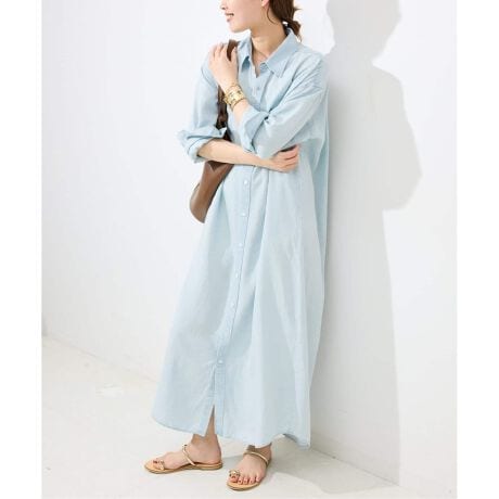 デニムライクな素材を使用したシャツワンピース。