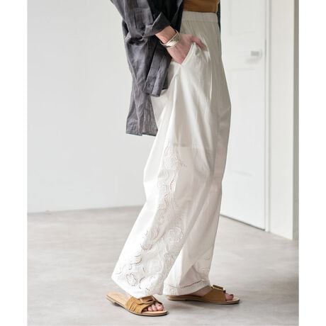 軽やかに着映える、カットワークエンブロイダリーパンツ。