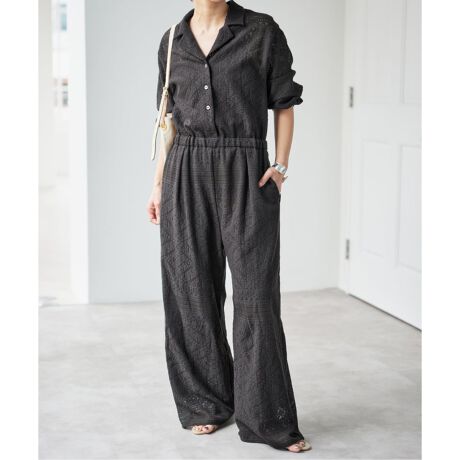 キカ柄にパネル状のパターンを組み合わせた、他ではなかなか出会えないレース素材のジャンプスーツ。