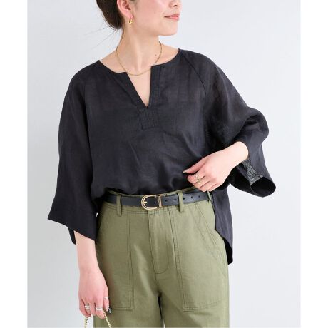 チクチクせず柔らかく肌に馴染む風合いが特徴のリネンブラウス。