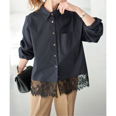 軽やかなレースがポイントのタイプライターシャツ。