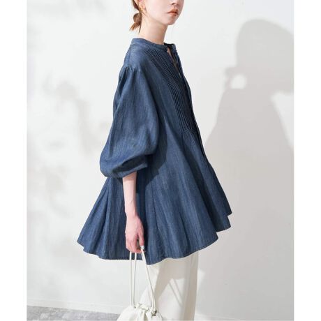 裾に向かってふんわりと広がるペプラムシルエットに。