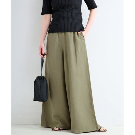 落ち感あるリネンレーヨンを使用した、ウエストゴムギャザーのワイドパンツ。