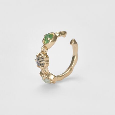 春風のやわらかな揺らめきや、新芽・つぼみの愛らしさから着想を得たイヤーカフ。爽やかな色合いの天然石は中間色で合わせやすく、どんな髪色にも自然に馴染みます。ベースの地金にはさりげないウェーブラインを描き、優しいムードを漂わせるデザインです。※天然石や天然素材を使用しているものは、サイズ・色味・風合いの違いや、若干の傷、内包物の有無などに個体差があります。予めご了承ください。※摩擦や他のものとの引っ掛けなどで取れたり破損することがありますのでご注意ください。※着用や着脱する際に、他の衣類や髪の毛などに引っ掛かることがあります。着用する際は耳にフィットするように軽く押さえ、脱落しないことを確認してください。