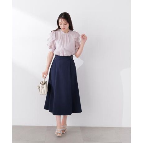 両サイドバックルがポイントのフレアスカート。ウエストタックにより、トップスインするとすっきり見せてくれます。春らしいカラーがコーディネートに華やかさをプラス。一枚取り入れると季節感のあるスタイルが完成します。
