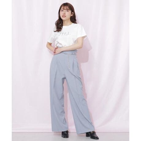 チェーンベルトが目を引く、モード感漂うタックワイドパンツ。タック入りのデザインで腰まわりをすっきり見せ、脚長効果を演出します。程よいワイドシルエットで、抜け感のある大人スタイルに。シンプルなトップスと合わせるだけでコーデが完成。オンオフ問わず活躍する洗練ボトムです。※撮影時照明の関係により、色味が違って見える場合がございます。またパソコン・スマートフォンなどの環境により、若干製品と画像のカラーが異なる場合もございます。予めご了承ください。商品の色味は、商品単品画像をご参照下さい。※商品画像はサンプルのため、色味やサイズ等の仕様に変更がある場合がございますので、予めご了承ください。