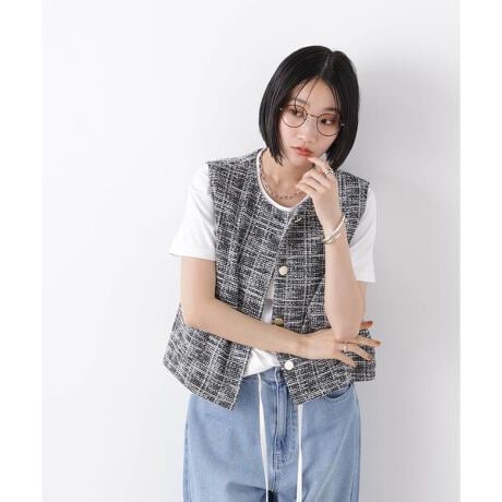 落ち着きのある華やかさが、大人で上品な印象のツイードジレ