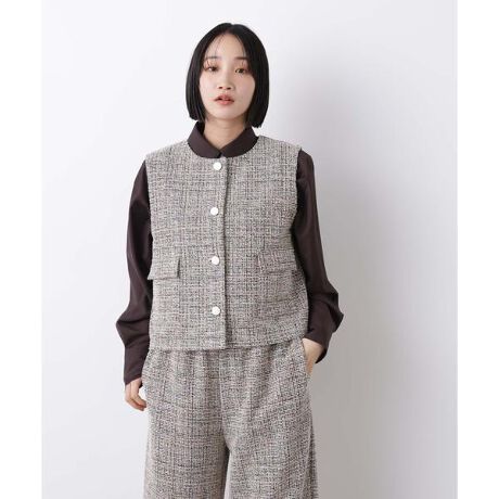・ミックスカラー調のツイード織りが華やかで上品な印象のジレトップス